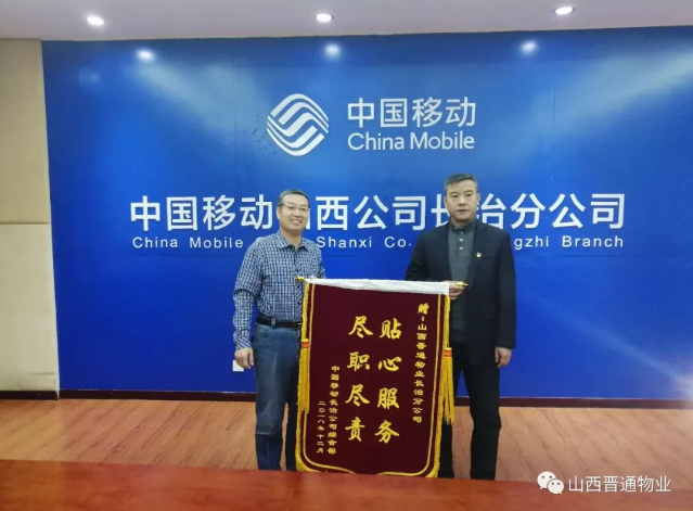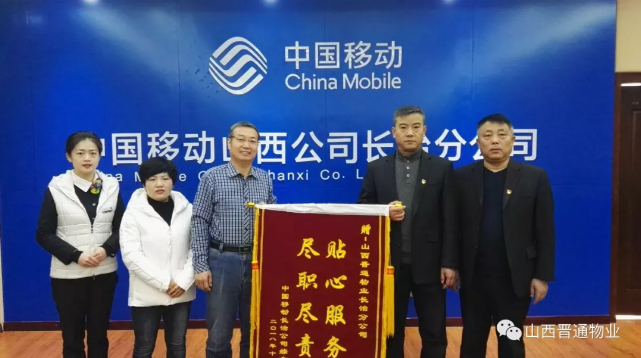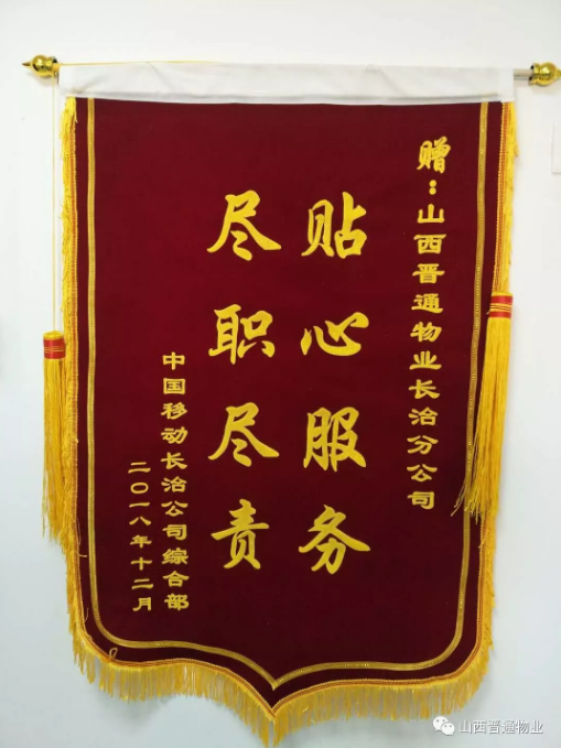 长治分公司一直秉承“用情做人、用心做事”的服务理念,在工作中不断提高服务品质,真诚地为业主服务,得到业主的认可。12月28日,长治移动公司综合部送来锦旗,这是对我们工作最大的鼓励,在今后的日子里,我们会继续前行,为业主提供更优质、更贴心的服务。
