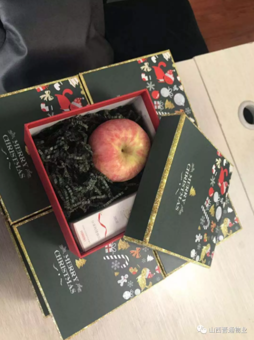 12月24日平安夜,化建项目部精心采购苹果与精美包装盒,杨经理和办公室成员一起动手包装并为业主以及晋通员工赠送平安果,让业主和员工感受到来自晋通深深的祝福,收到平安果的每个人脸上都洋溢着幸福的笑容。在这个意义非凡的圣诞节前夕,我们欢聚一堂,祝愿大家在新的一年里平平安安!