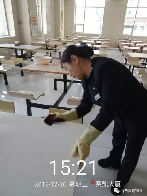 为给业主们营造干净、卫生、整洁的就餐环境,迎接2019年的到来,近日,赛鼎项目部前厅全体员工进行了”年度卫生大清扫”活动。此次活动以小组为单位,划分责任区域,员工们积极细致的重点清洗门窗、玻璃、墙壁和桌底等死角,经过数天的共同努力,全部清洁完毕,餐厅环境焕然一新。