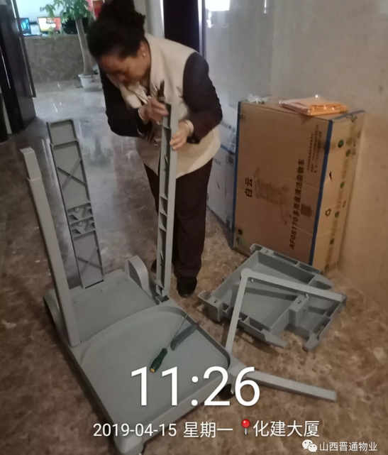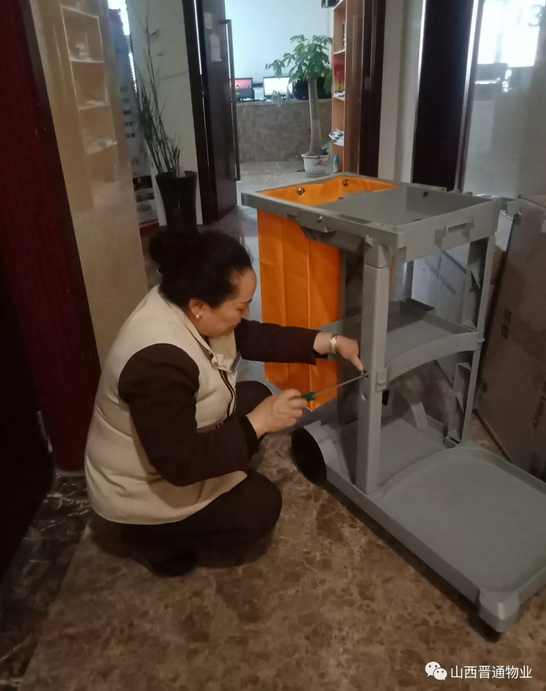 为了更好的服务业主,提高服务质量,提升服务品质,本周化建项目保洁部新申购了两辆工具车。保洁大姐们根据图纸自己动手组装工具车以便新工具车尽快投入使用,经过一个多小时的摸索,两辆工具车全部组装成功。在整个组装过程中,保洁大姐们都努力发挥自己的聪明才智,团结一致,最终实现共同的工作目标——工具车成功组装。