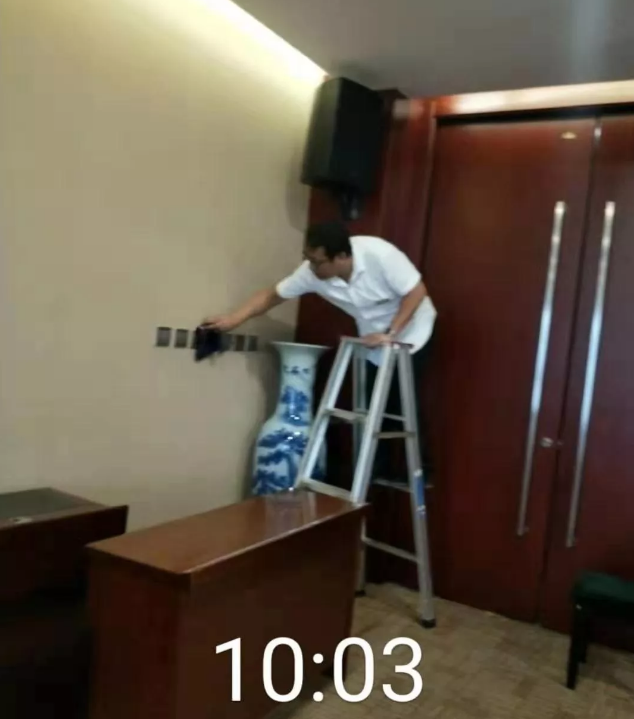 近期化建大厦为了提高公司形象,对会议室进行了大型施工改造。施工改造完成后,项目经理组织保洁部协助客服部对会议室进行清洁工作。为了更好地完成此项任务,保洁部主管对卫生细化做出了详细的安排,从区域划分、初步清洁再到细致清洁、责任到人,正是因为安排的合理性使得项目部在人手少、时间短的情况下还有效快速且达标的完成了清洁工作,并且大家在清洁过程中充分体现了团队协作精神:团结就是力量。