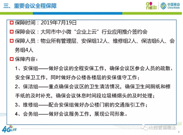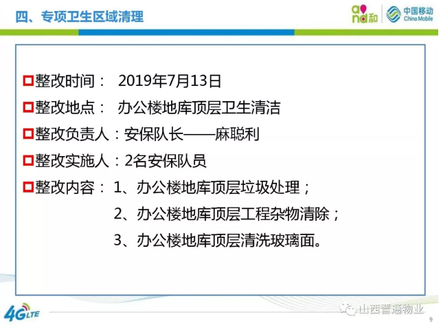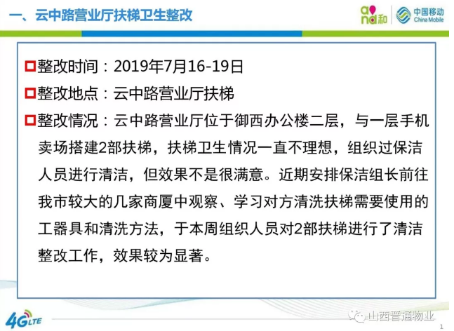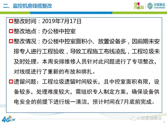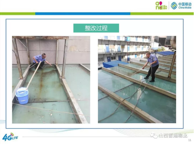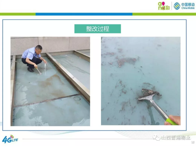 2019年7月12日15:20,运城市区突降暴雨二十余分钟,造成运城移动研发楼前院南侧积水,安保主管发现后立即在工作群里通知,维修主管迅速集合工作人员携带疏通工具前去处理。