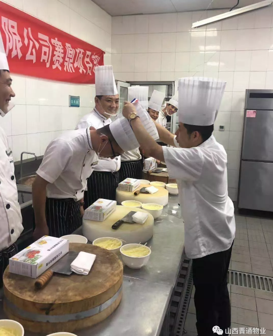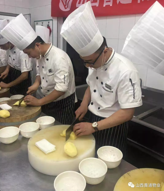随着秒表的开始计时,全体参赛人员争先恐后的开始了切土豆丝的比赛,比赛中他们精神高度集中、认真比赛、操作手法规范,切出来的土豆片厚薄有度,土豆丝粗细一致。随着比赛时间的不断增加,很快就涌现出了第一位、第二位、第三位……切完后厨师长对所有参赛人员的成品进行了“仪容仪表”、丝条粗细、边角料、用时等综合打分后,评出了第一、二、三名,并对得奖人员进行了奖品的颁发。