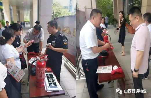 同时,为响应业主方安全生产月的宣传活动,安保部配合业主方于7月1日开展消防知识宣传活动,对业主进行灭火器、防毒面具、消防设施的使用的讲解,从而提高业主的安全意识和自救能力。