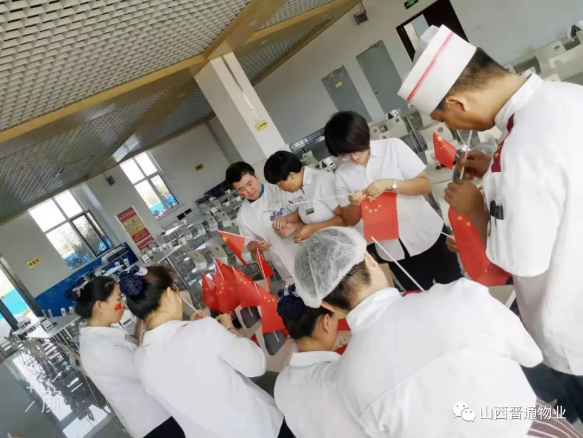 2019年是中华人民共和国成立70周年,这七十周年的风风雨雨,让我们国家一步一步变得更加繁荣和富强。科技园区项目部——作为化建科技园区项目的“大管家”,也在国庆即将到来之日,群策群力,给业主营造了一个温馨、和谐、朝气蓬勃的就餐环境。看!一面面小红旗,一张张可爱的笑脸,代表了我们的祝福,也代表了我们因身为中国人的自豪。